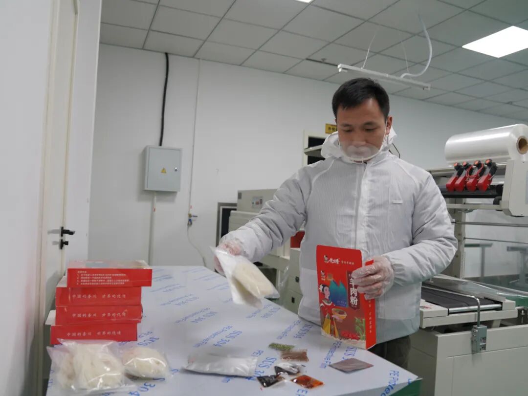 站在散发着团团白雾的高压蒸汽大锅前,工作人员苟承慷介绍,熬煮至浓郁后的汤料先行冷却,另一台机器就开始切羊肉片,最后将熬煮好的汤汁、米粉装入包装袋中,经密封、抽真空、高温灭菌后,一道独具务川特色的美食就“新鲜出炉”。